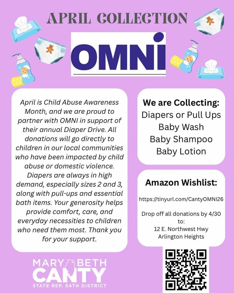 Looking for a simple way to give back this month. State Representative Mary Beth Canty has donation drive for OMNI- collecting diapers, baby wash, baby shampoo and baby lotion